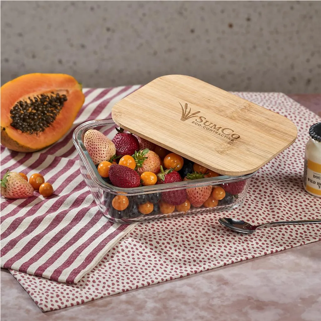 Make an eco-friendly choice, with this food container and lunch box, made from clean glass and sustainable bamboo. The bamboo lid has a silicone suction seal to secure the lid to the base, with the silicone band adding extra security.